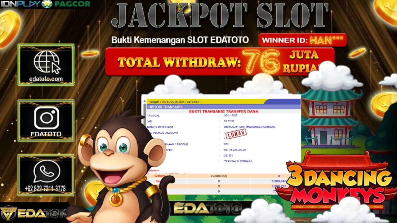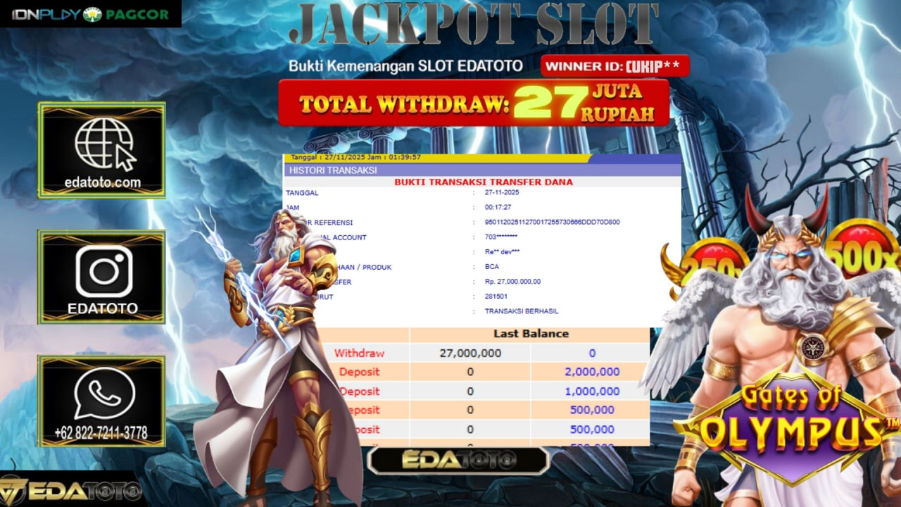 Selamat Kepada Pemilik user ID : cukip*** Hari/Tanggal :Selasa / 26, November 2025 Jackpot : Rp. 30,900,000 JT Withdraw :27,000,000 . . .