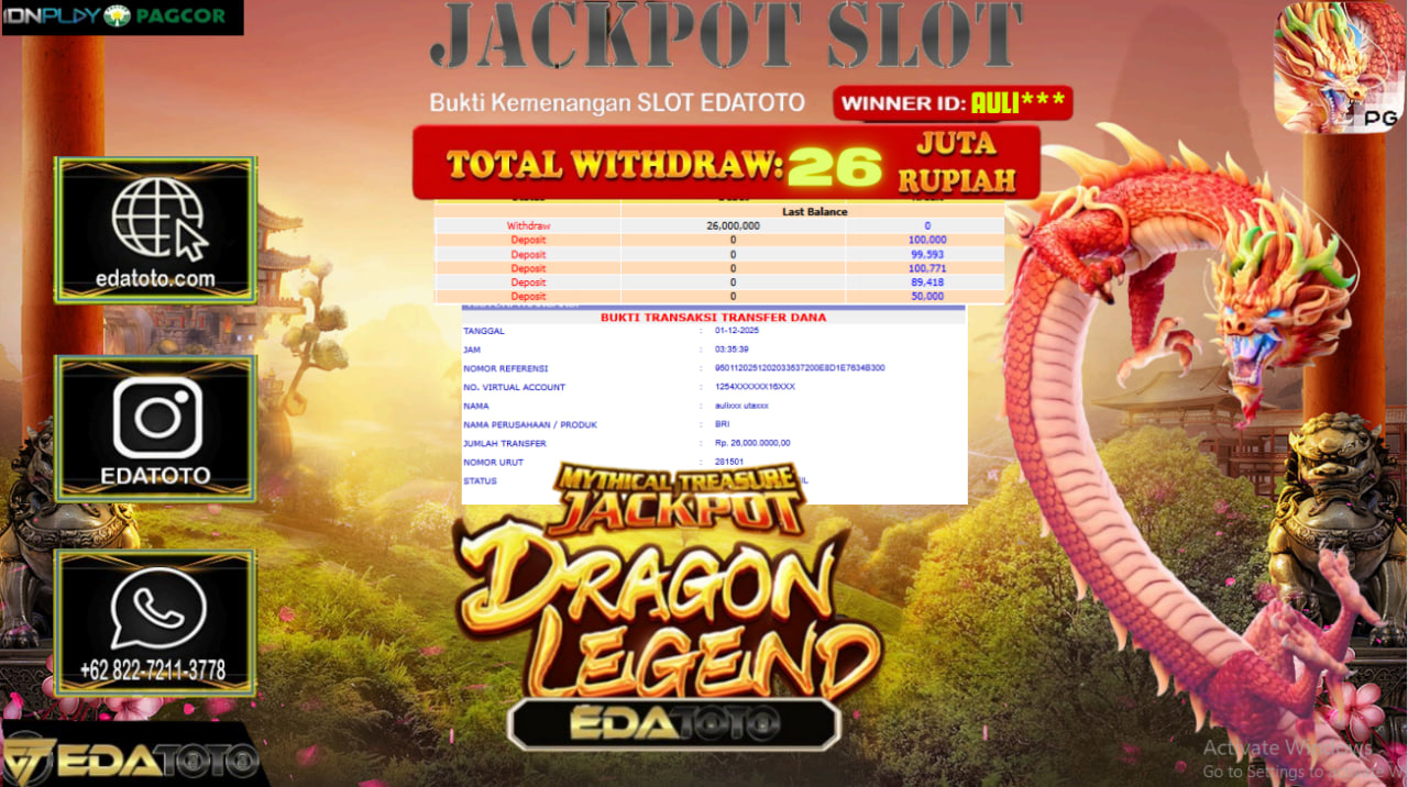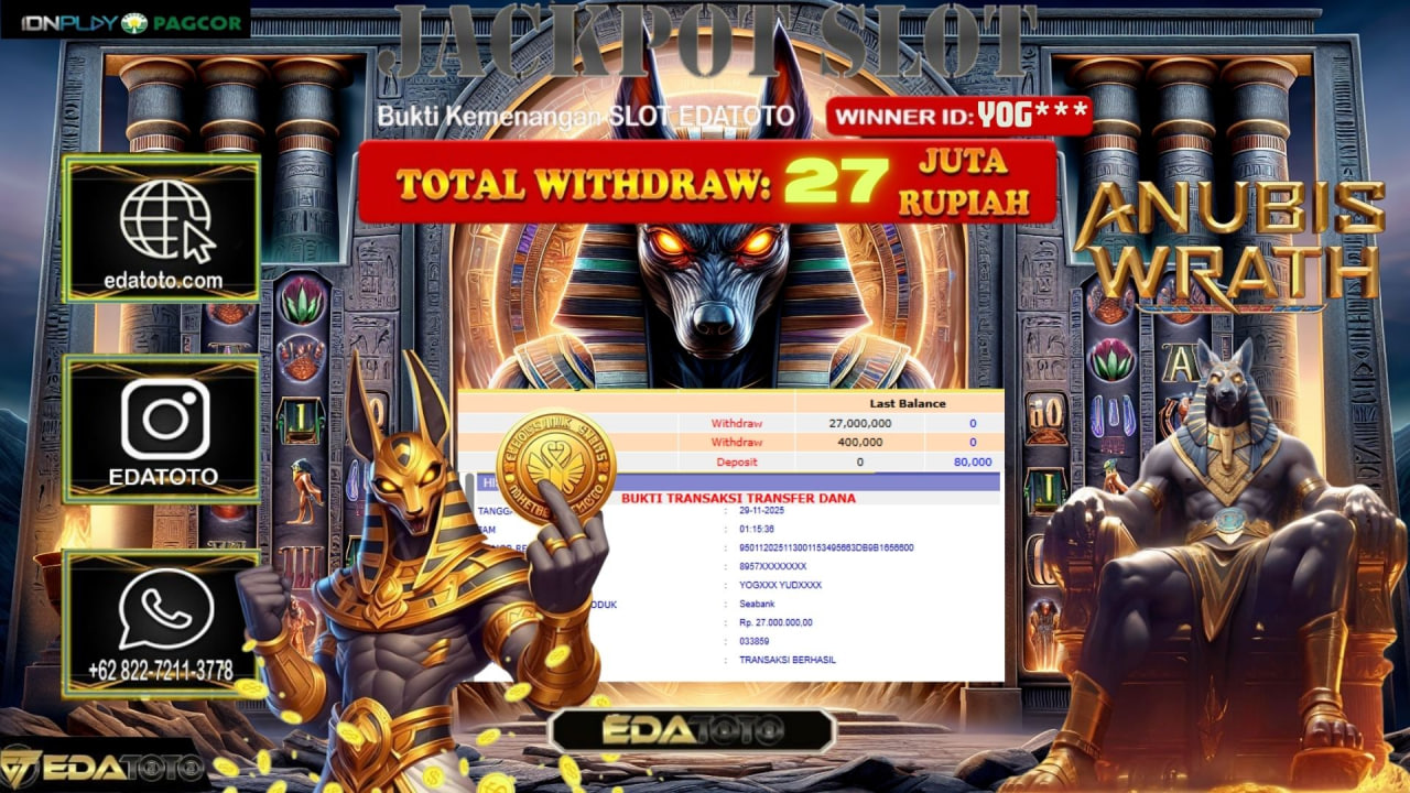 Selamat Kepada Pemilik user ID : YOG*** Hari/Tanggal :SENIN / 1, Desember 2025 Jackpot : Rp. 28,500,000 JT Withdraw :27,000,000 . . .